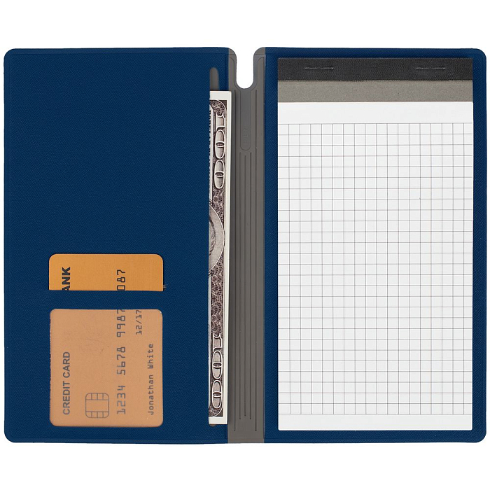 Съемная обложка с карманом для документов, отделением для пластиковой карты и местом для ручки.
