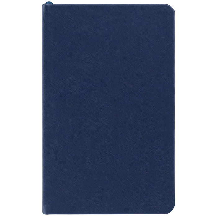 Блокнот с твердой обложкой, выполнен из материала Latte, темно-синего цвета XX, дополнен ляссе в цвет обложки.