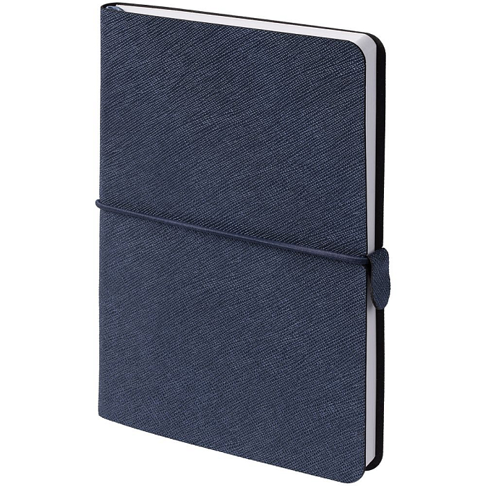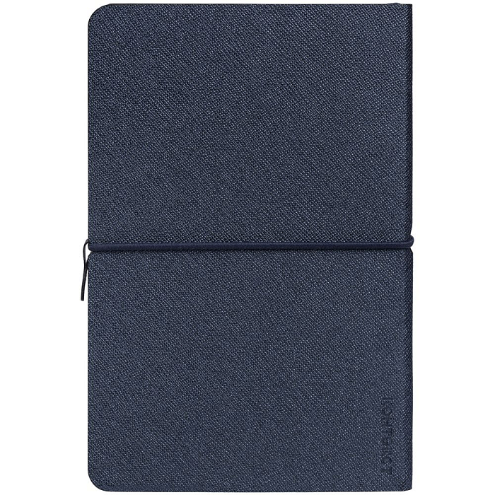 Блокнот с гибкой обложкой, выполнен из материала Saffian, синий НН. Дополнен ляссе в цвет обложки.