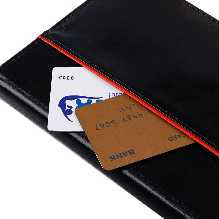 Ежедневник с твердой обложкой из искусственной кожи Sarif, дополнен карманом, капталом и двойным ляссе.