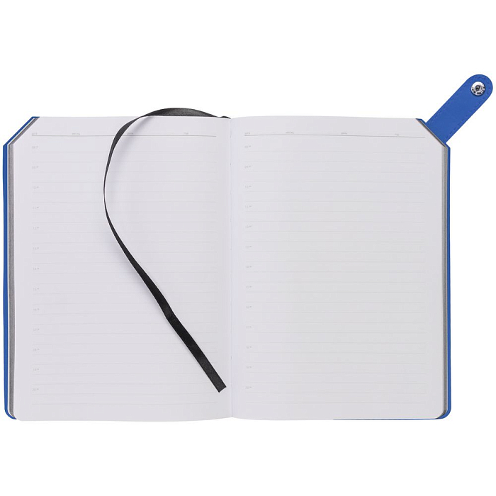 Ежедневник с гибкой обложкой и тонированным обрезом. Выполнен из материала Latte, синий НН, дополнен черным ляссе.
