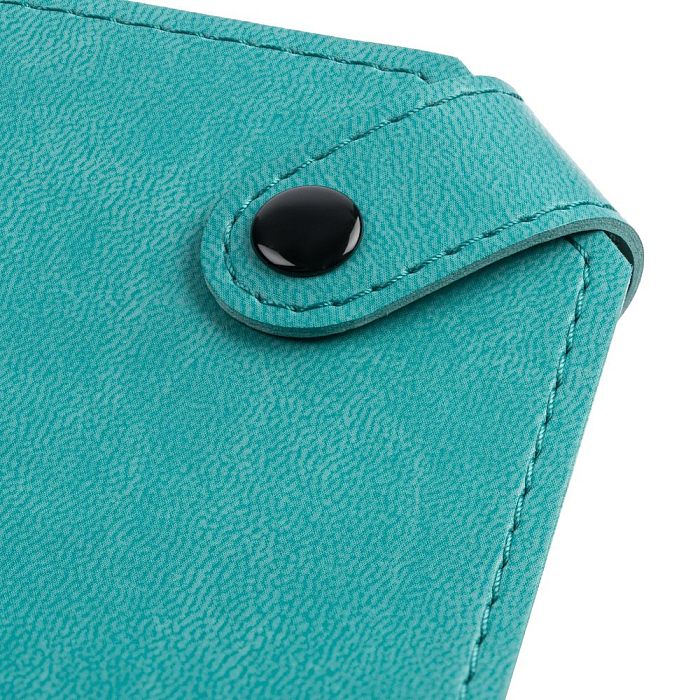 Ежедневник с гибкой обложкой и тонированным обрезом. Выполнен из материала Latte, морская волна II, дополнен черным ляссе.