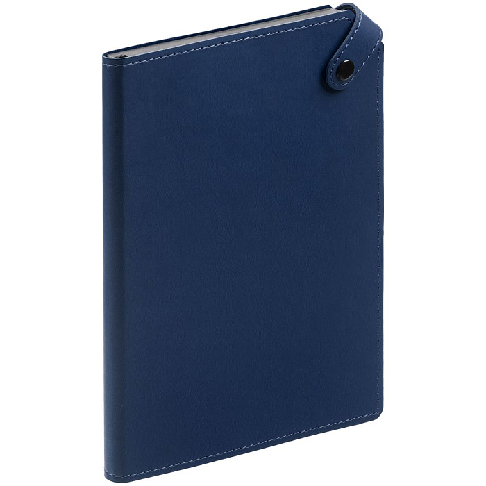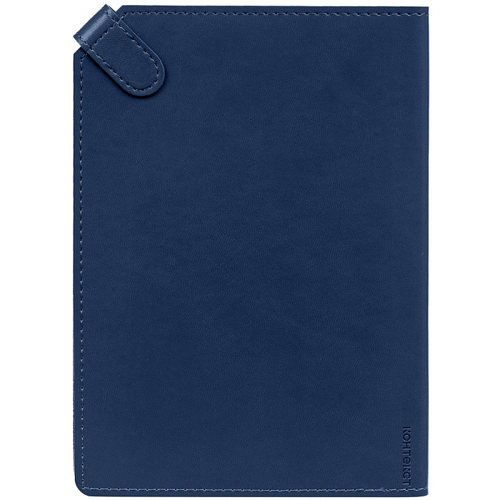 Ежедневник с гибкой обложкой и тонированным обрезом. Выполнен из материала Latte, темно-синий ХХ, дополнен черным ляссе.