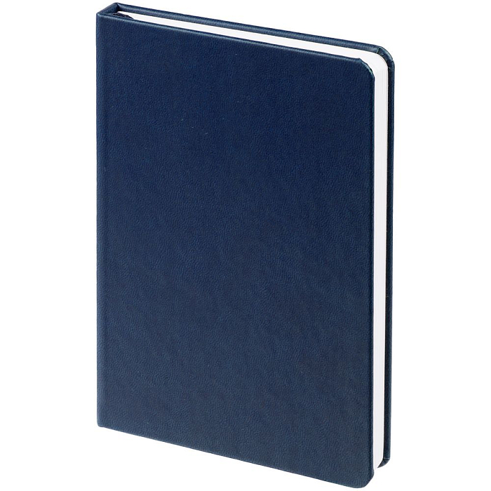 Ежедневник с твердой обложкой, выполнен из материала Latte, темно-синий ХХ, дополнен ляссе в цвет обложки.