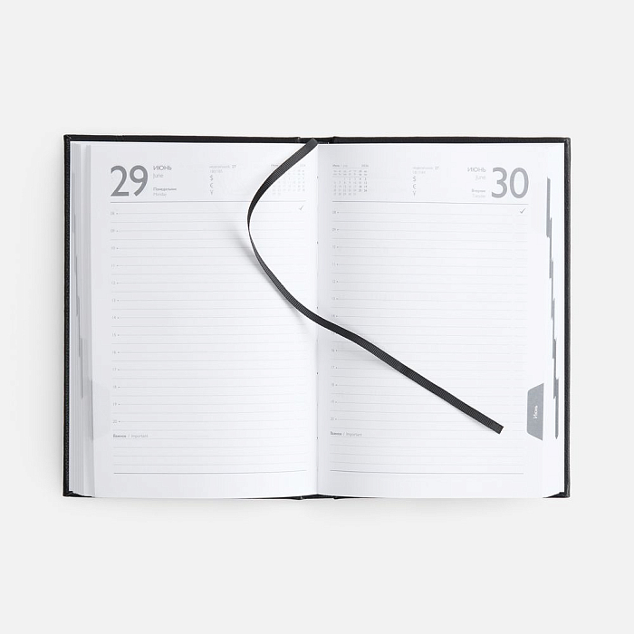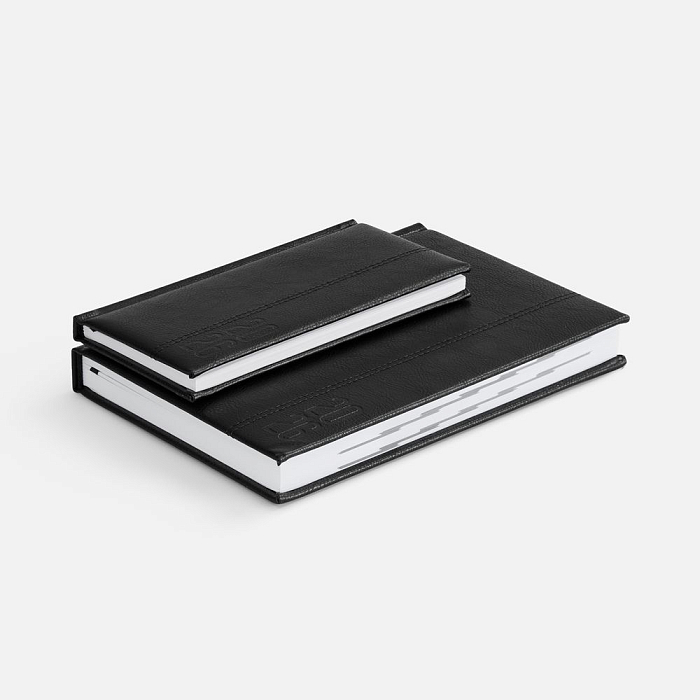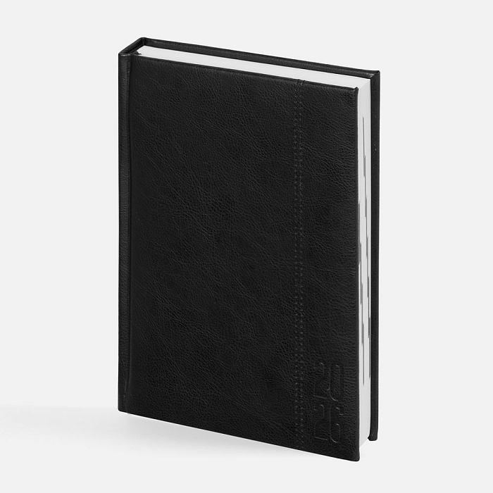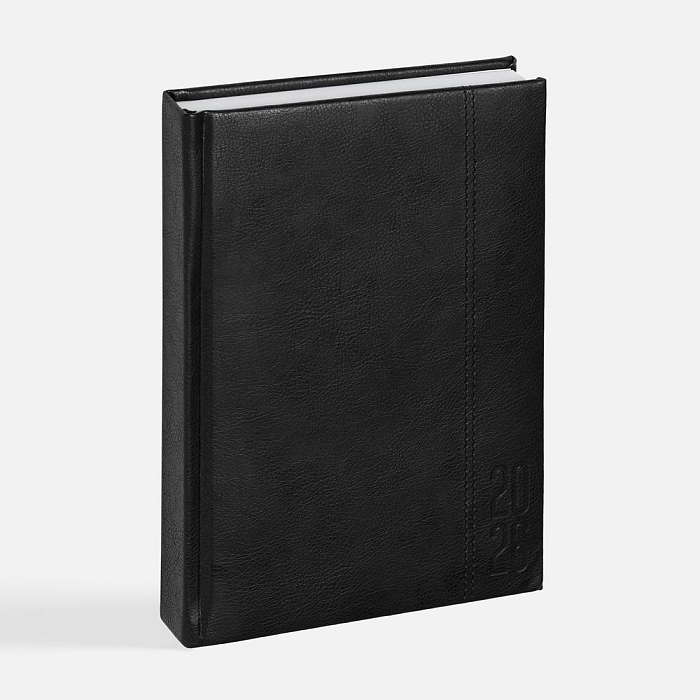 Ежедневник с твердой обложкой с поролоном из искусственной кожи, дополнен декоративной строчкой, капталом и ляссе в цвет ежедневника.