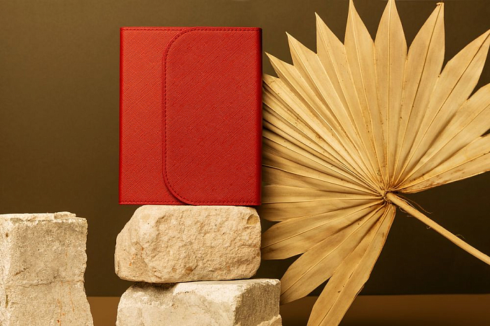 Ежедневник с твердой обложкой из фактурного материала и клапаном на магните.