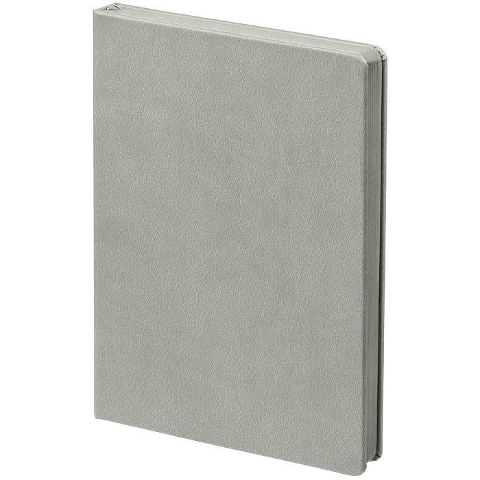 Ежедневник с твердой обложкой и тонированным обрезом. Выполнен из материала Latte, серый, дополнен ляссе в цвет обложки.