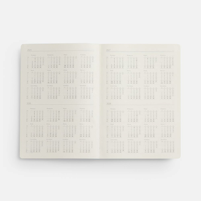 Гибкая обложка ежедневника выполнена из материала Soft Touch Pearl, черный АА и цветного Latte (внутренняя часть обложки).