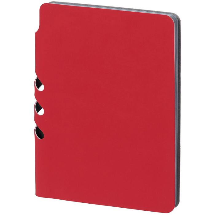 Ежедневник с гибкой обложкой выполнен из материала Soft Touch Ultra, красный РР и серого Latte (внутренняя часть обложки).