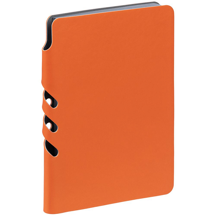 Ежедневник с гибкой обложкой выполнен из материала Soft Touch Pearl, оранжевый ОО и серого Latte (внутренняя часть обложки).