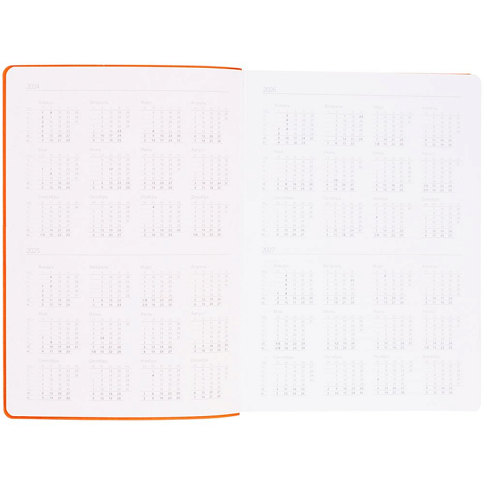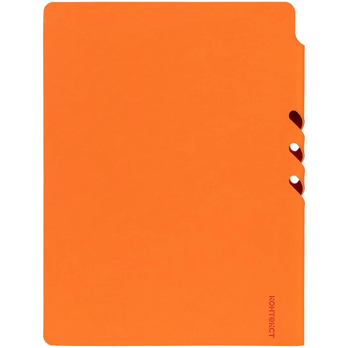 Гибкая обложка выполнена из материала Soft Touch, оранжевый OO и Latte, оранжевый OO (внутренняя часть обложки). Внутри корешка — специальное место для крепления ручки размером до 15х1 см.