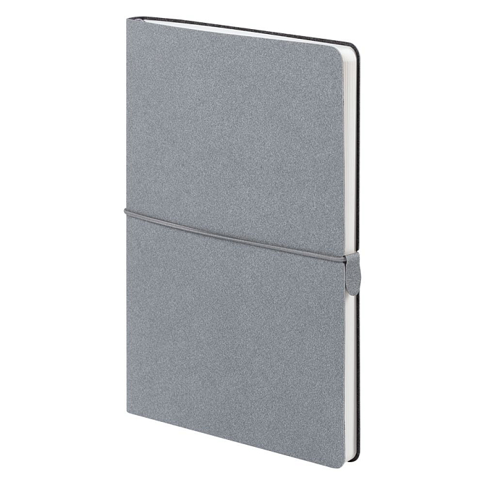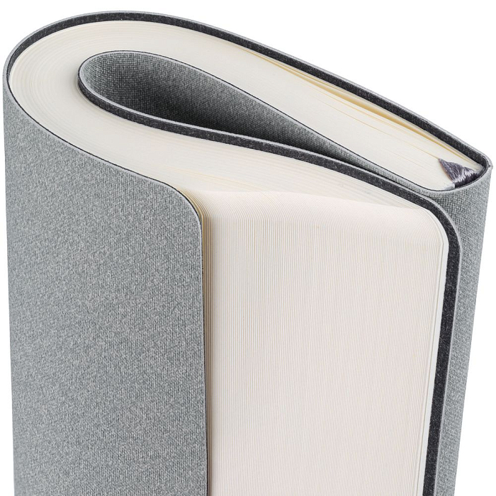 Гибкая обложка из материала Filigrana Melange, серый СС. Материал имитирует меланжевую ткань. Резинка с захватом серого цвета.