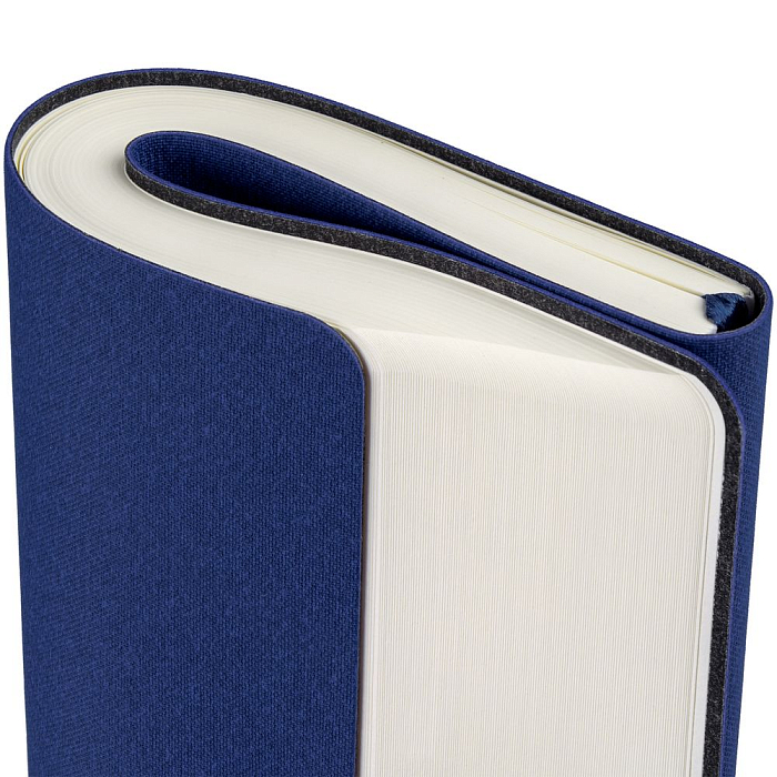 Гибкая обложка из материала Filigrana Melange, синий НН. Материал имитирует меланжевую ткань. Резинка с захватом синего цвета.