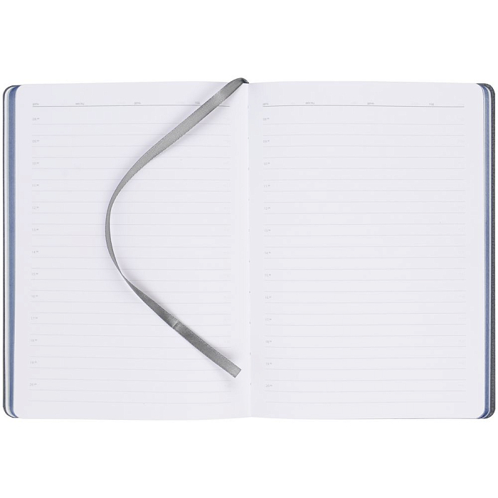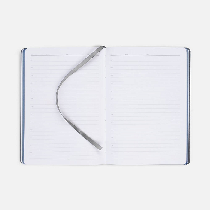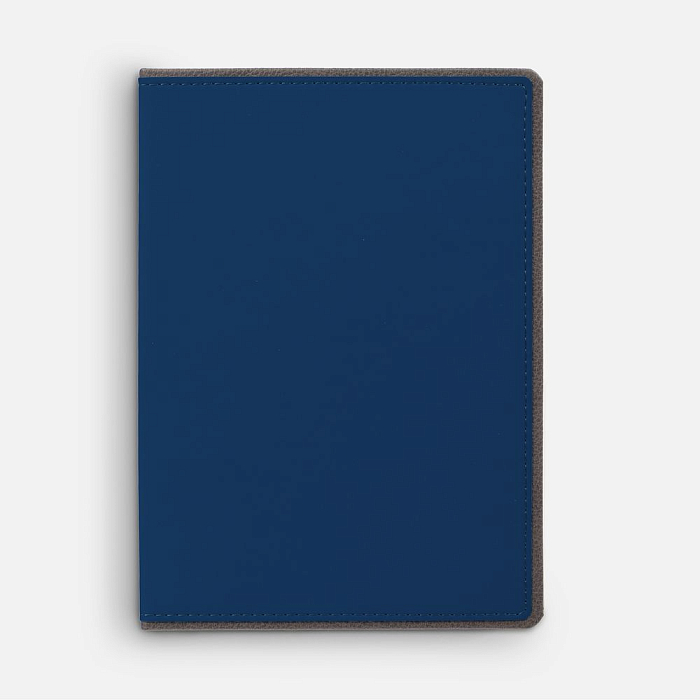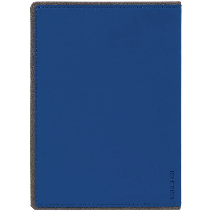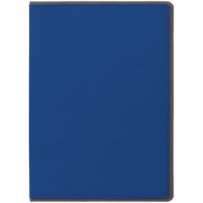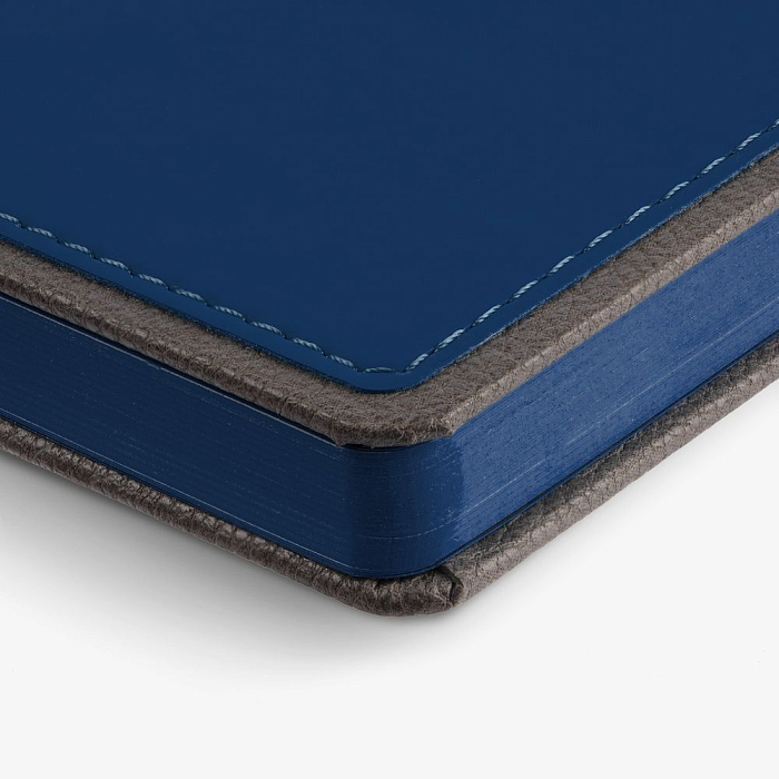 Ежедневник с твердой обложкой, выполнен из материалов Soft Touch Ultra, синий НН и La Fite, серый СС. Ляссе темно-серого цвета.