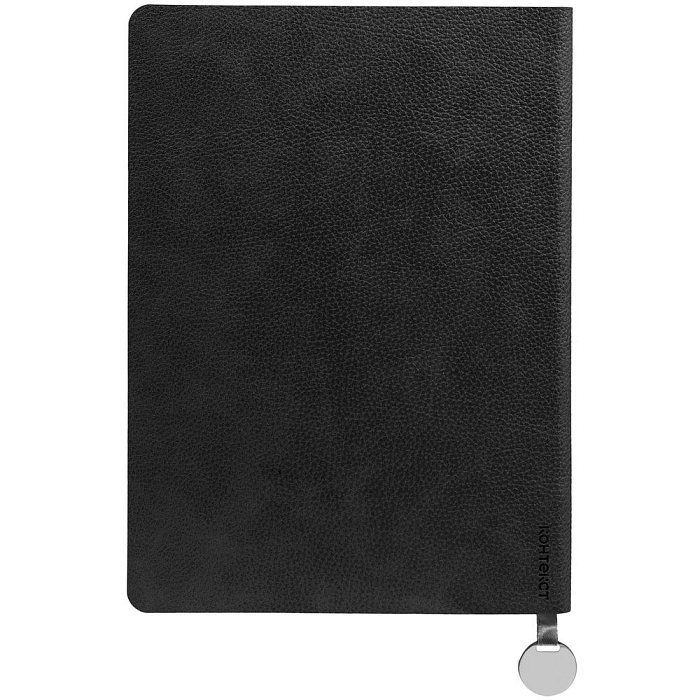 Ежедневник с гибкой обложкой, выполнен из материала La Fite, черный АА, дополнен ляссе в цвет обложки с металлическим шильдом.