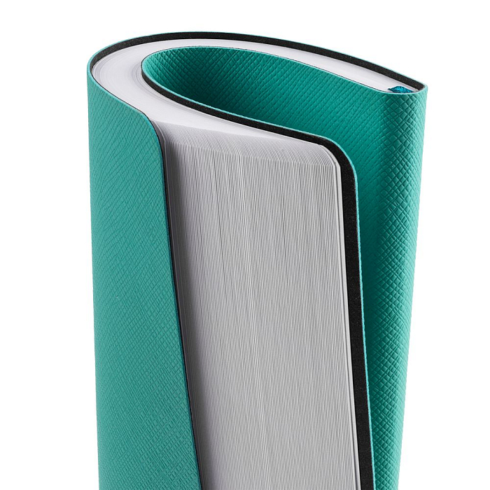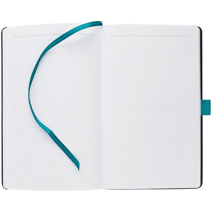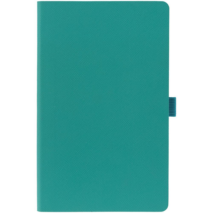 Ежедневник с гибкой обложкой, выполнен из материала Nice Touch, морская волна II, дополнен цветными ляссе и петлей-резинкой для ручки.