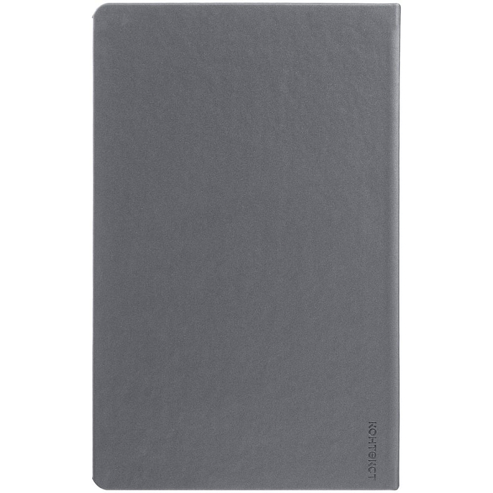Ежедневник в твердой обложке, выполненной из материала Soft Touch Pearl, серый СС, дополнен цветным ляссе и магнитом, удерживающим ручку.