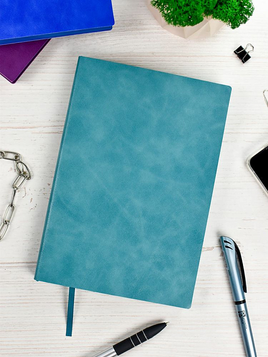 Ежедневник с гибкой обложкой из искусственной кожи Vacheto, дополнен капталом и ляссе в цвет ежедневника.