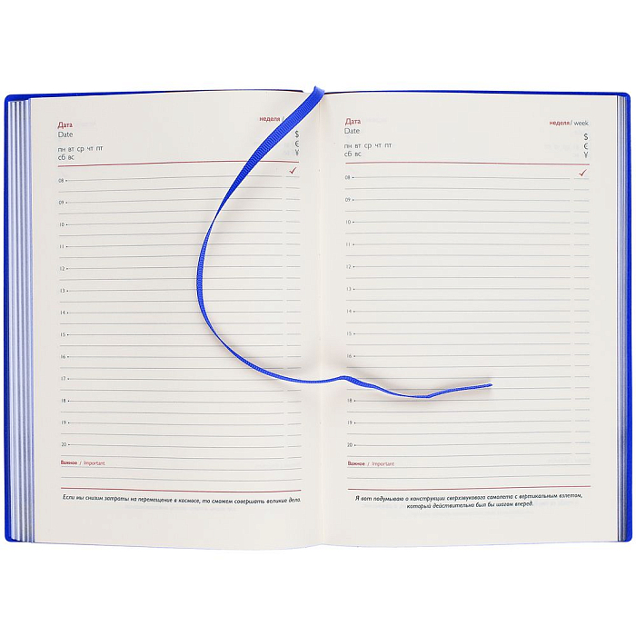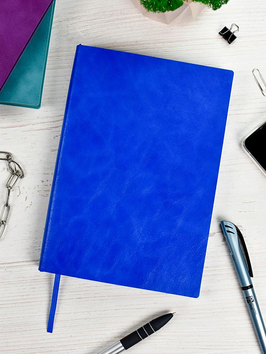 Ежедневник с гибкой обложкой из искусственной кожи Vacheto, дополнен капталом и ляссе в цвет ежедневника.