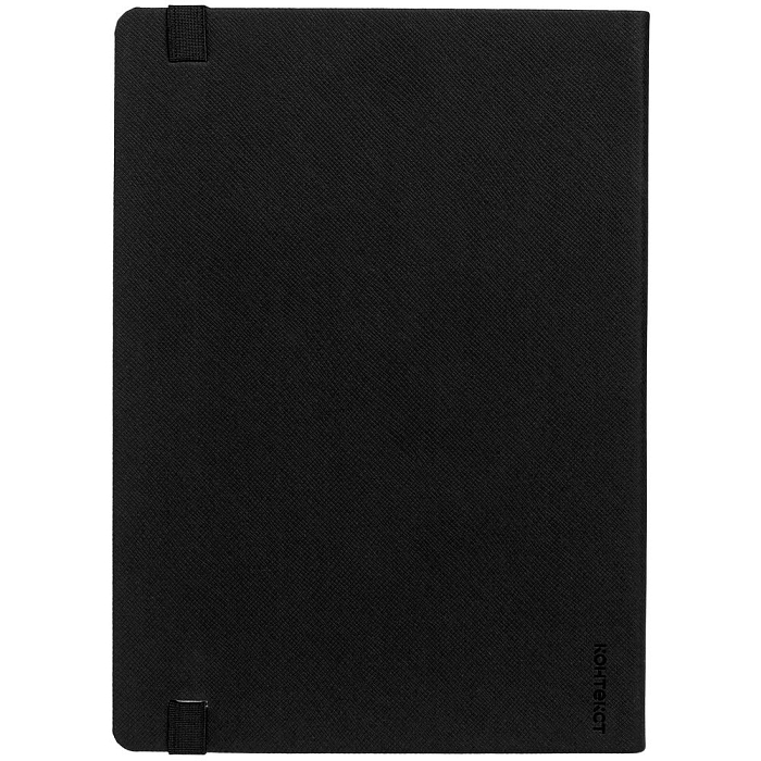 Ежедневник с твердой обложкой выполнен из материала Nice Touch, черный АА, и дополнен резинкой шириной 1 см и ляссе черного цвета.