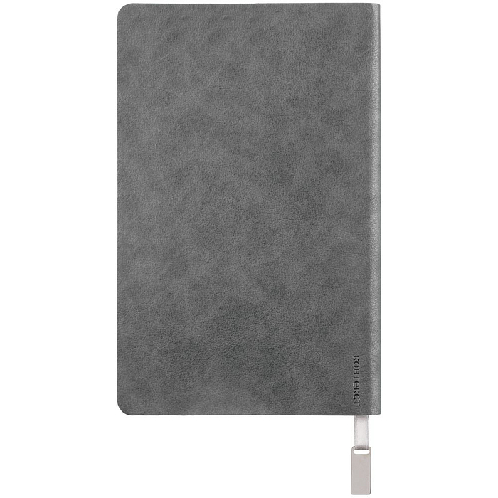 Ежедневник с гибкой обложкой, выполнен из материала Petrus, серый СС, дополнен серым ляссе с металлическим шильдиком.