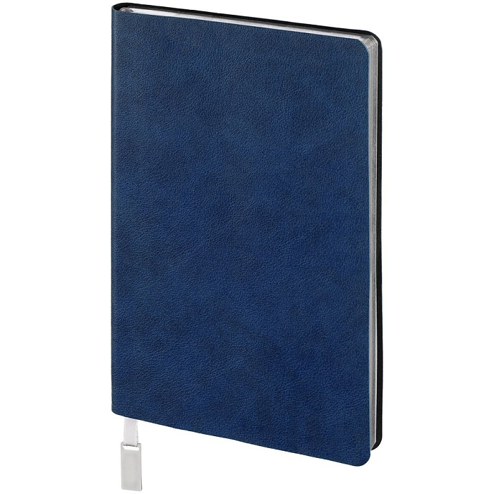 Ежедневник с гибкой обложкой, выполнен из материала Petrus, синий НН, дополнен серым ляссе с металлическим шильдиком.