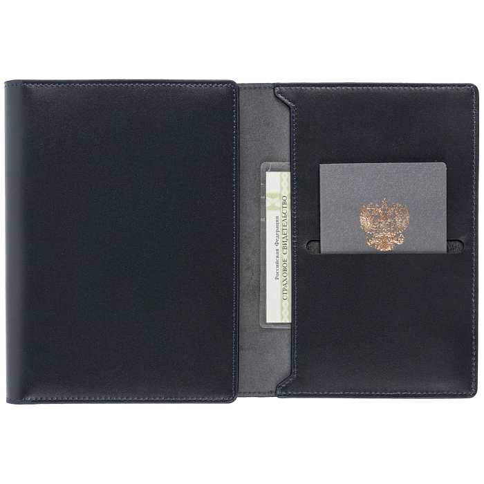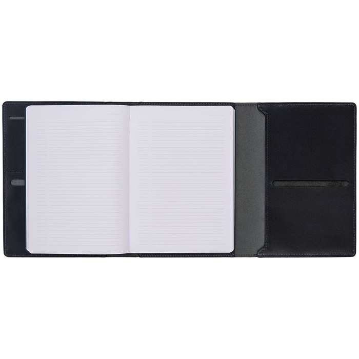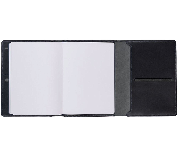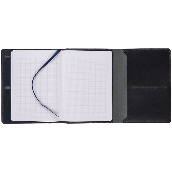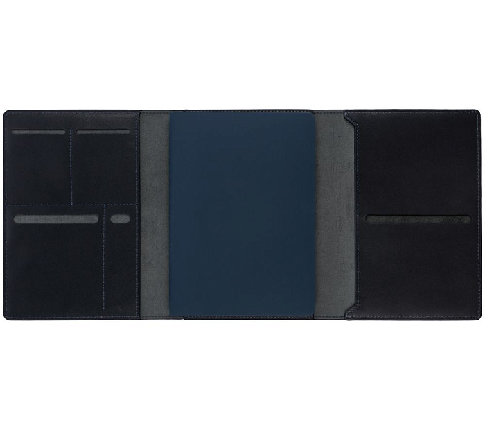 Ежедневник со съемной обложкой-портфолио из натуральной кожи, с капталом, репсовым ляссе и окрашенным срезом обложки в цвет материала.