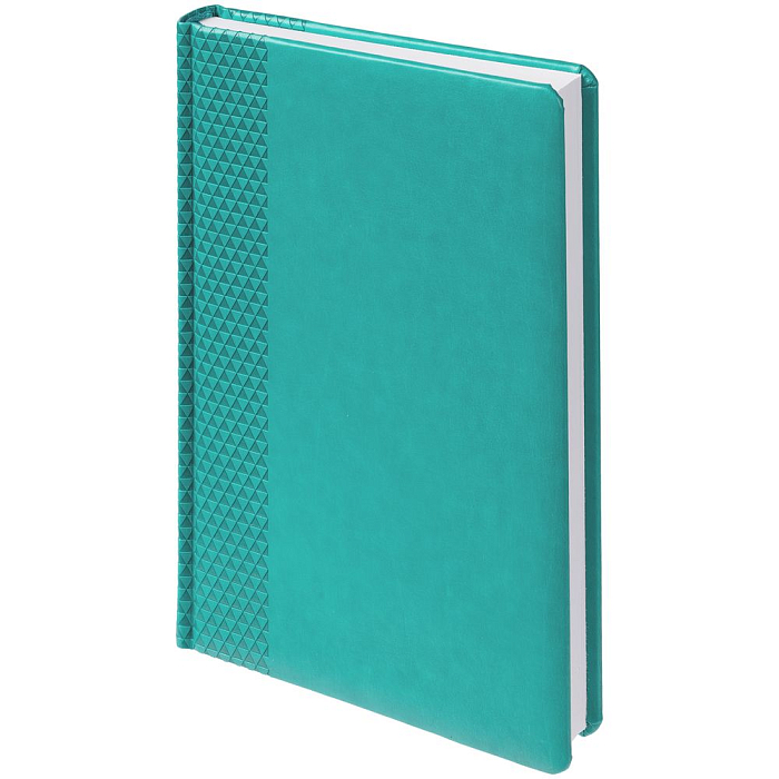 Ежедневник с твердой обложкой, выполнен из материала Waltz, морская волна II, дополнен ляссе в цвет материала.