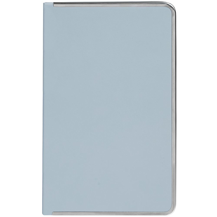 Изящный ежедневник с зауженным блоком и стильными деталями — металлической окантовкой на обложке и металлизированным обрезом.