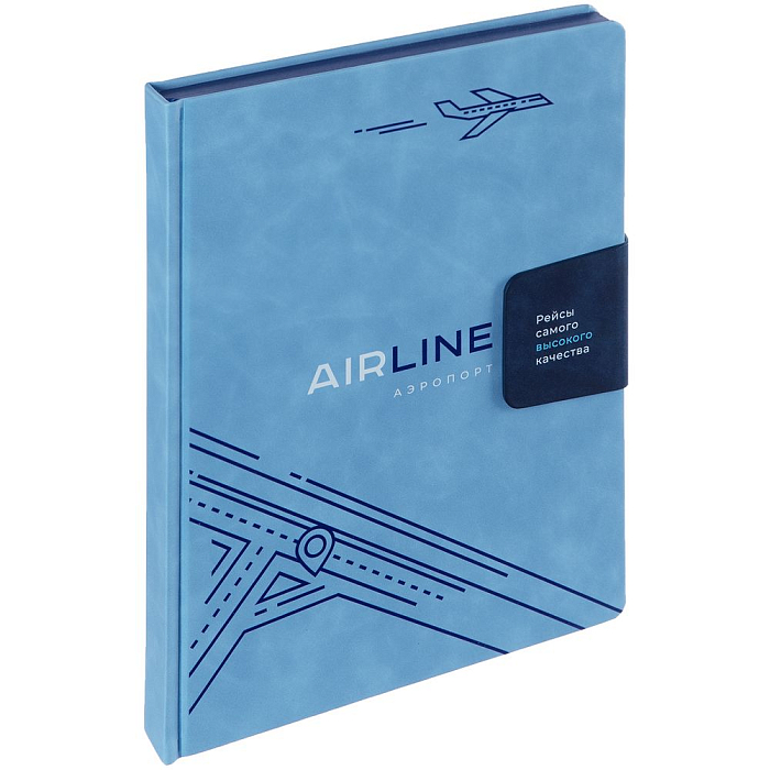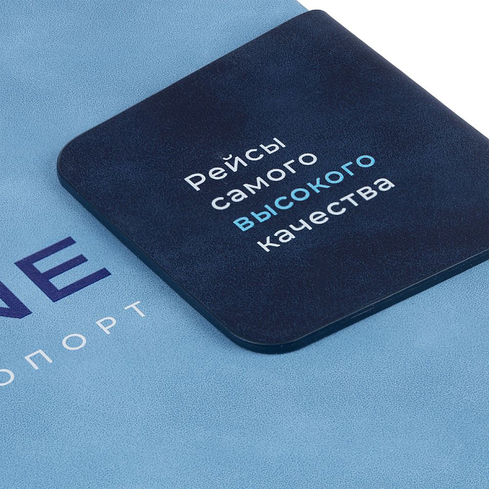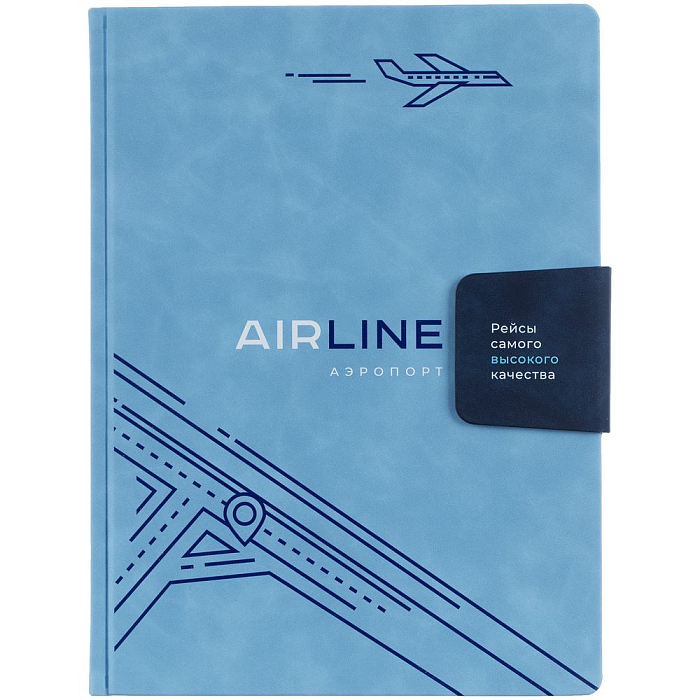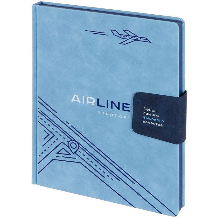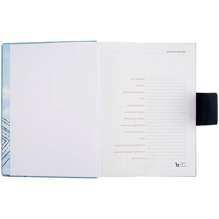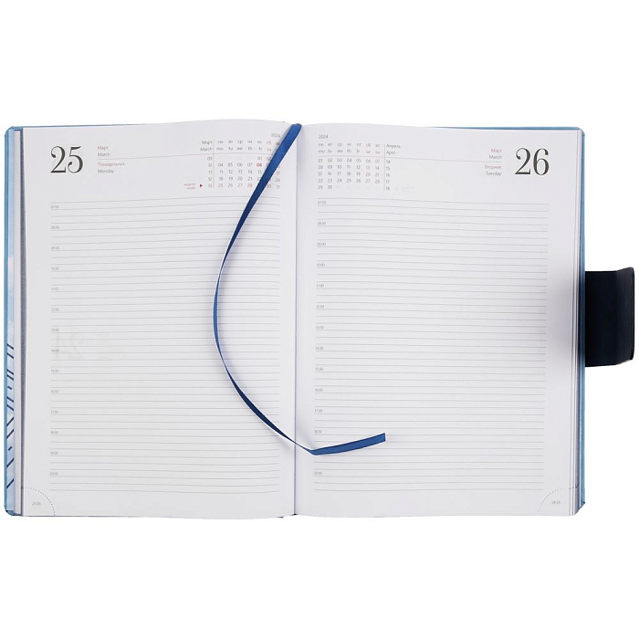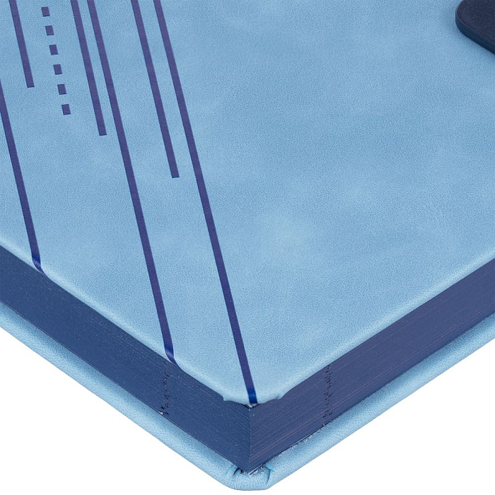 Ежедневник датированный с твердой обложкой, выполнен из материала Nubuck Touch, голубой JJ, дополнен хлястиком из материала Nubuck Touch, темно-синий HH.
