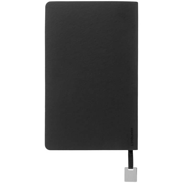 Ежедневник с гибкой обложкой, выполнен из материалов Soft Touch Pearl, черный АА, и Latte, черный (внутренняя часть обложки), дополнен ляссе в цвет обложки с металлическим шильдиком.