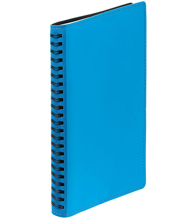 Ежедневник с гибкой обложкой, выполнен из материалов Soft Touch Ultra, голубой JJ и Nice touch, черный АА.