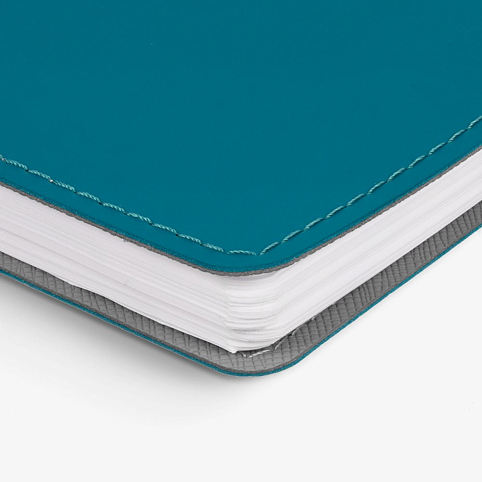 Ежедневник с гибкой обложкой, выполнен из материалов Soft Touch, цвет морской волны II и Nice touch, серый СС.