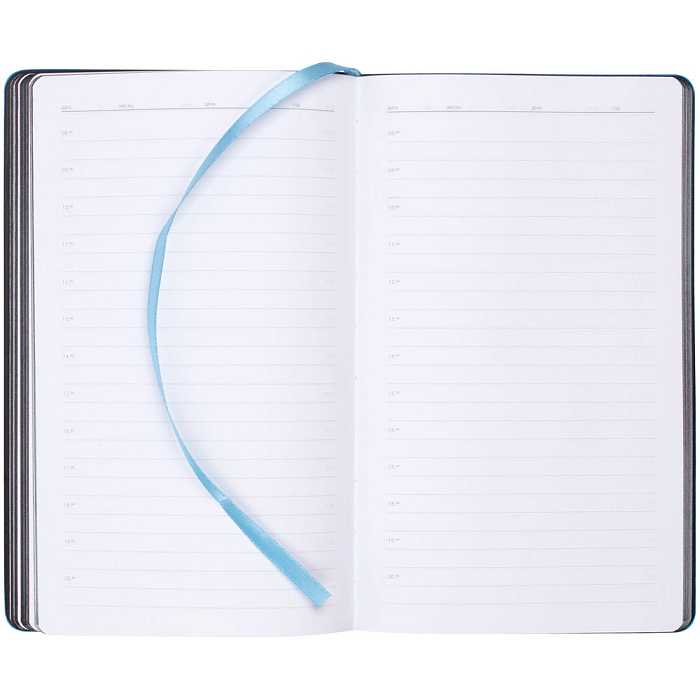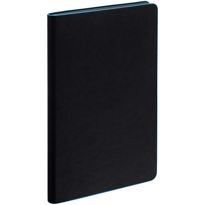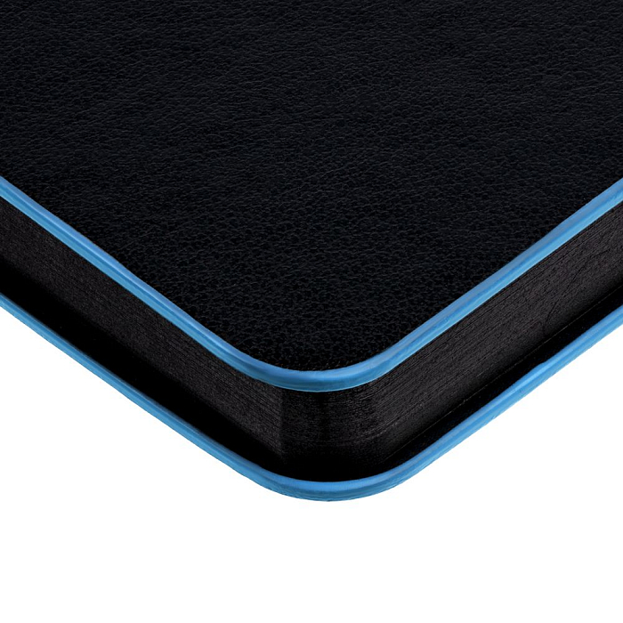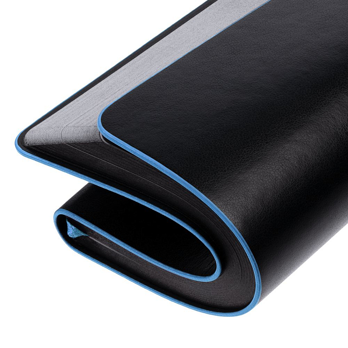 Ежедневник с гибкой обложкой, выполнен из материала Waltz, черный АА, дополнен цветными срезом обложки и ляссе.