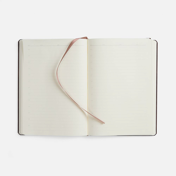 Ежедневник с твердой обложкой, выполнен из материала Nubuck Touch, темно-коричневый ZZ, дополнен ляссе темно-коричневого цвета.