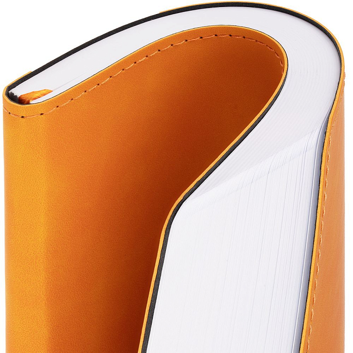 Ежедневник с гибкой обложкой, выполнен из материала Nubuck Touch, оранжевый OO, дополнен ляссе в цвет обложки.