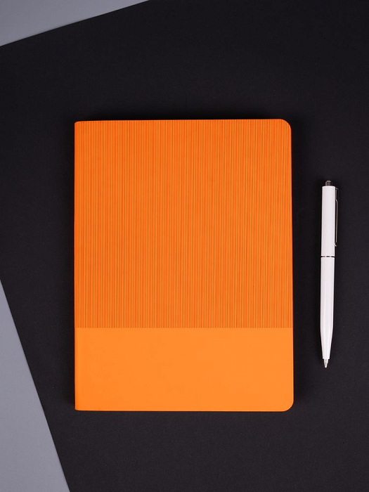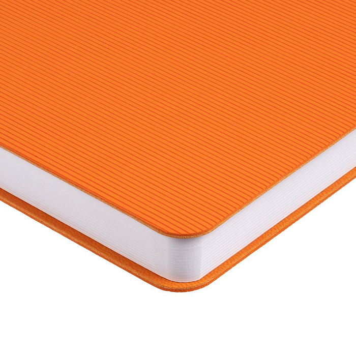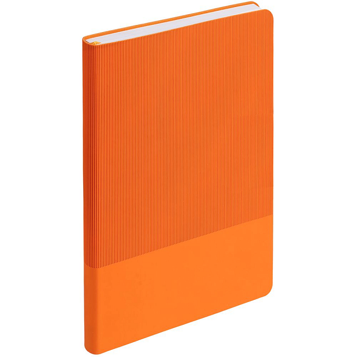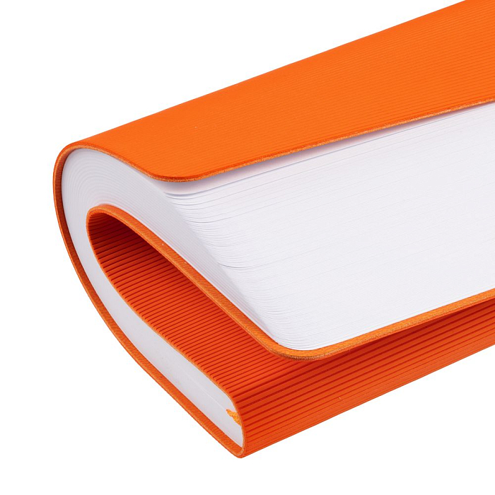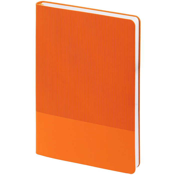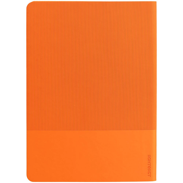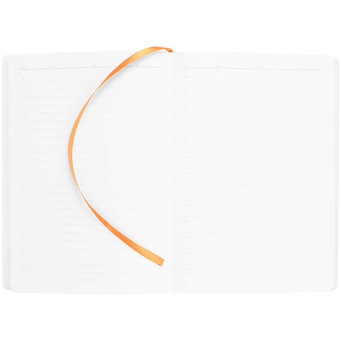 Ежедневник с гибкой обложкой выполнен из материала Soft Touch, оранжевый ОО и Latte, оранжевый (внутренний материал); дополнен ляссе оранжевого цвета и фактурным тиснением обложки.