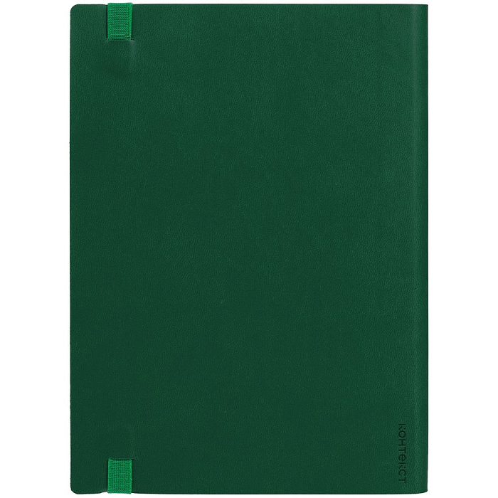 Ежедневник с гибкой обложкой выполнен из материала Latte, зеленый FF, и дополнен резинкой шириной 1 см, капталом и ляссе в цвет обложки.