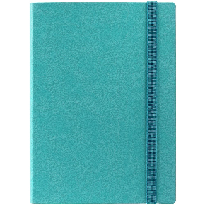 Ежедневник с гибкой обложкой выполнен из материала Latte, морская волна II, и дополнен резинкой шириной 1 см, капталом и ляссе в цвет обложки.