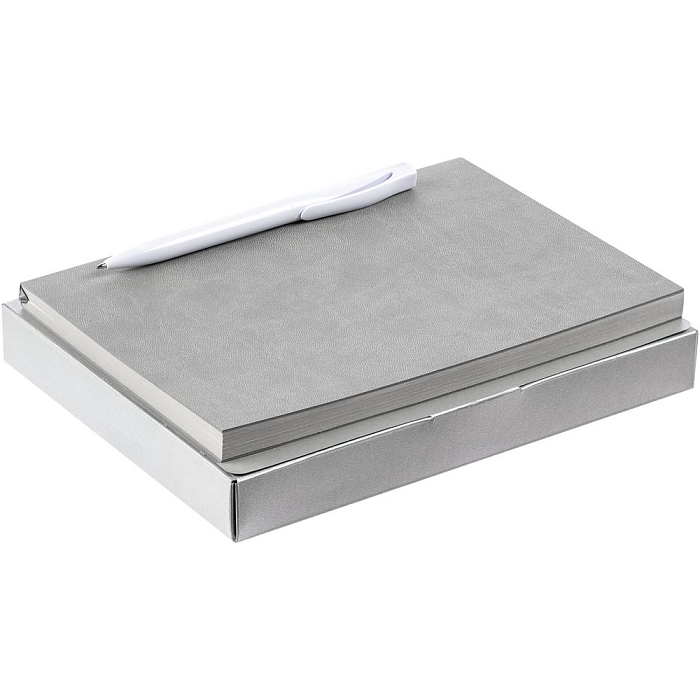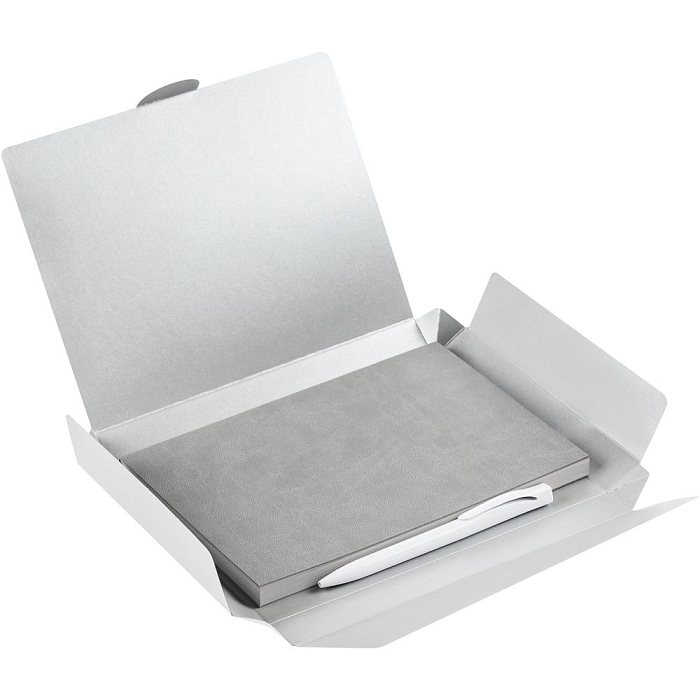 Компактный набор со стильным ежедневником в гибкой обложке с покрытием софт-тач и подходящей ручкой. Все составляющие сложены в самосборную коробку, которая придает набору законченность.