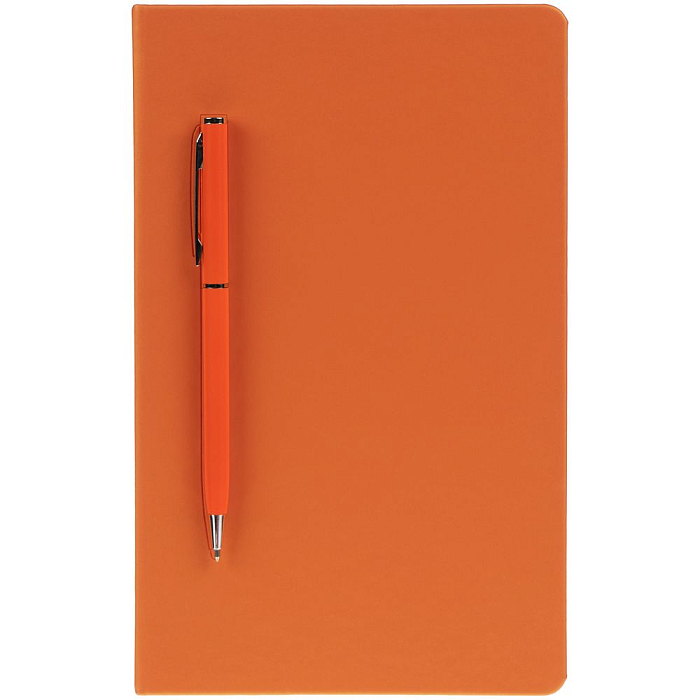Ежедневник в твердой обложке с цветным ляссе и магнитом, удерживающим ручку.