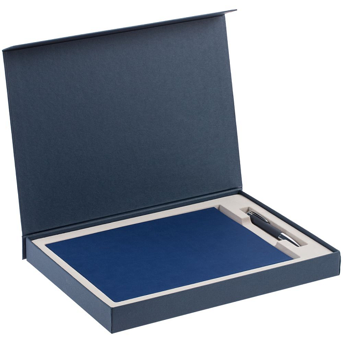 Коробка Roomy с ложементом под ежедневник А4 и ручку, синяя