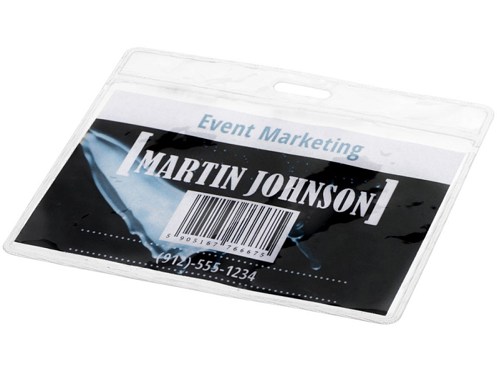 Бейдж холдер Serge. 8,8 x 10,0 см. Бейдж холдер со вставкой сзади и отверстием вверху, чтобы прикрепить к шнурку или роликовому зажиму. ПВХ.
