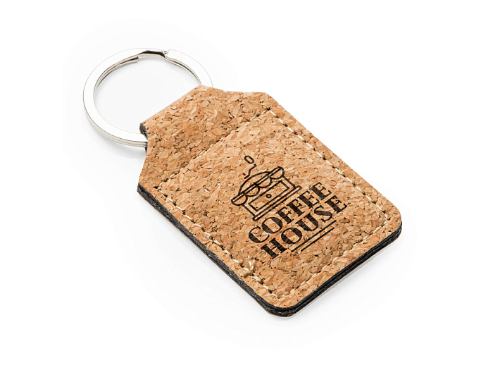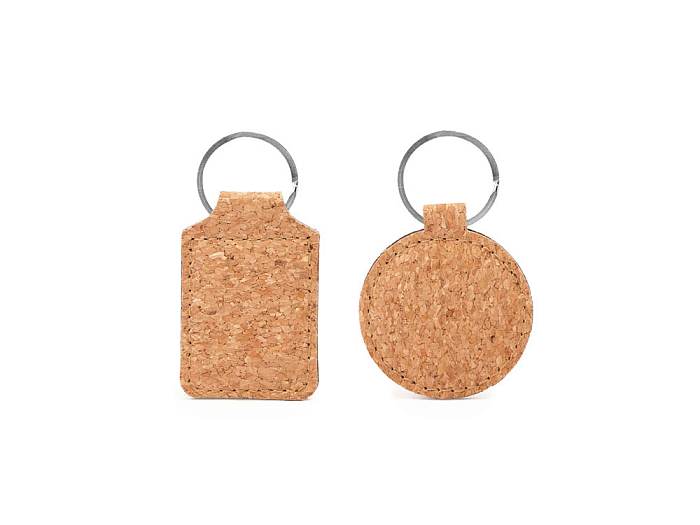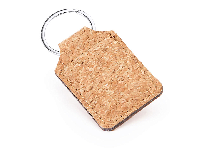 Классический брелок из натуральной пробки с металлическим кольцом.