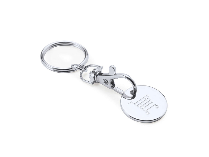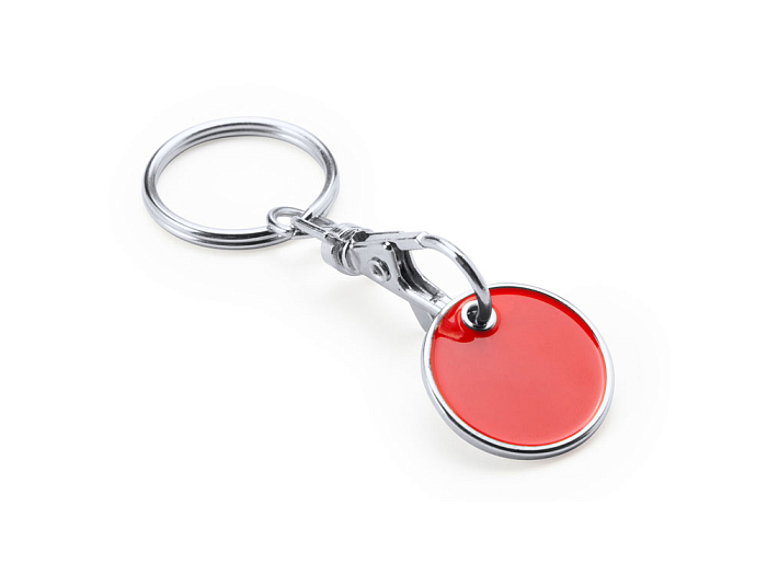 Металлический брелок с цветной эмалью в форме монеты для тележки супермаркета.