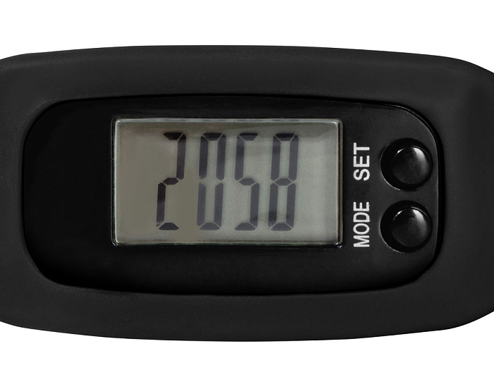 Наручные часы с возможностью отображения времени, калорий, шагов и дистанции. Есть переключение между метрической и британской системами измерений. На силиконовом ремешке можно сделать гравировку. Часы упакованы в пластиковую коробку, которую можно использовать для нанесения. Батарейка в комплекте.