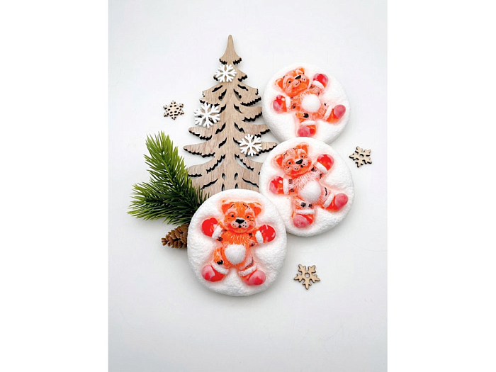 Превосходное мыло ручной работы в форме веселого тигренка на "снегу". Каждый тигренок по-своему уникален. Поставляется в прозрачном пакете с бечевкой, который можно забрендировать стикером с дизайном заказчика.