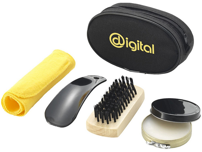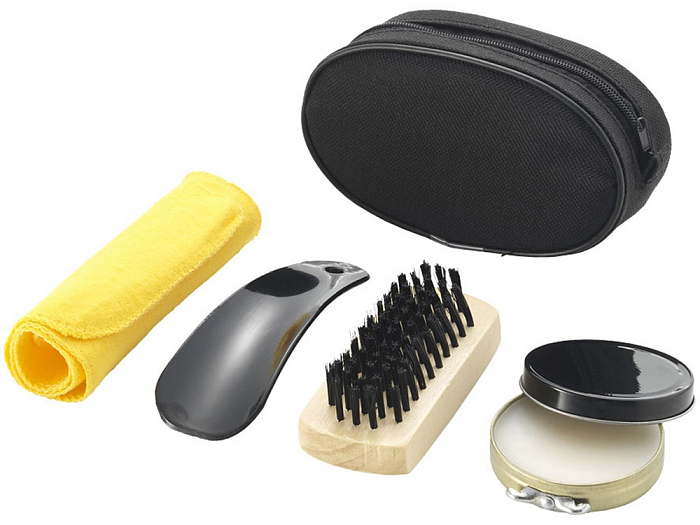 Набор для ухода за обувью - отличный подарок для тех, кто часто ездит в деловые поездки. В наборе такие необходимые аксессуары, как бесцветный крем для обуви, ложка, щетка, салфетка для полировки. Компактно упакованы в нетканый чехол, на который можно нанести изображение.