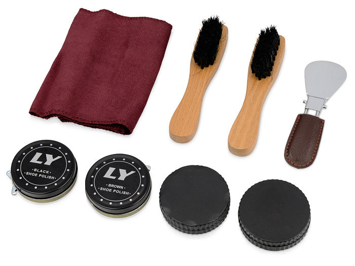 Подарочный набор для чистки обуви включает в себя 8 предметов, которые предназначены для поддержания чистоты вашей обуви.