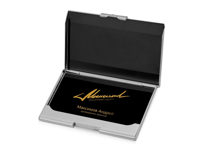 Визитница "Carlo" отлично подходит в качестве подарка или сувенира по любому поводу. Внутренняя сторона корпуса выполнена из искусственной кожи, которая обеспечивает дополнительную защиту визиток от истирания. На металлический корпус можно нанести гравировку по вашему эскизу.